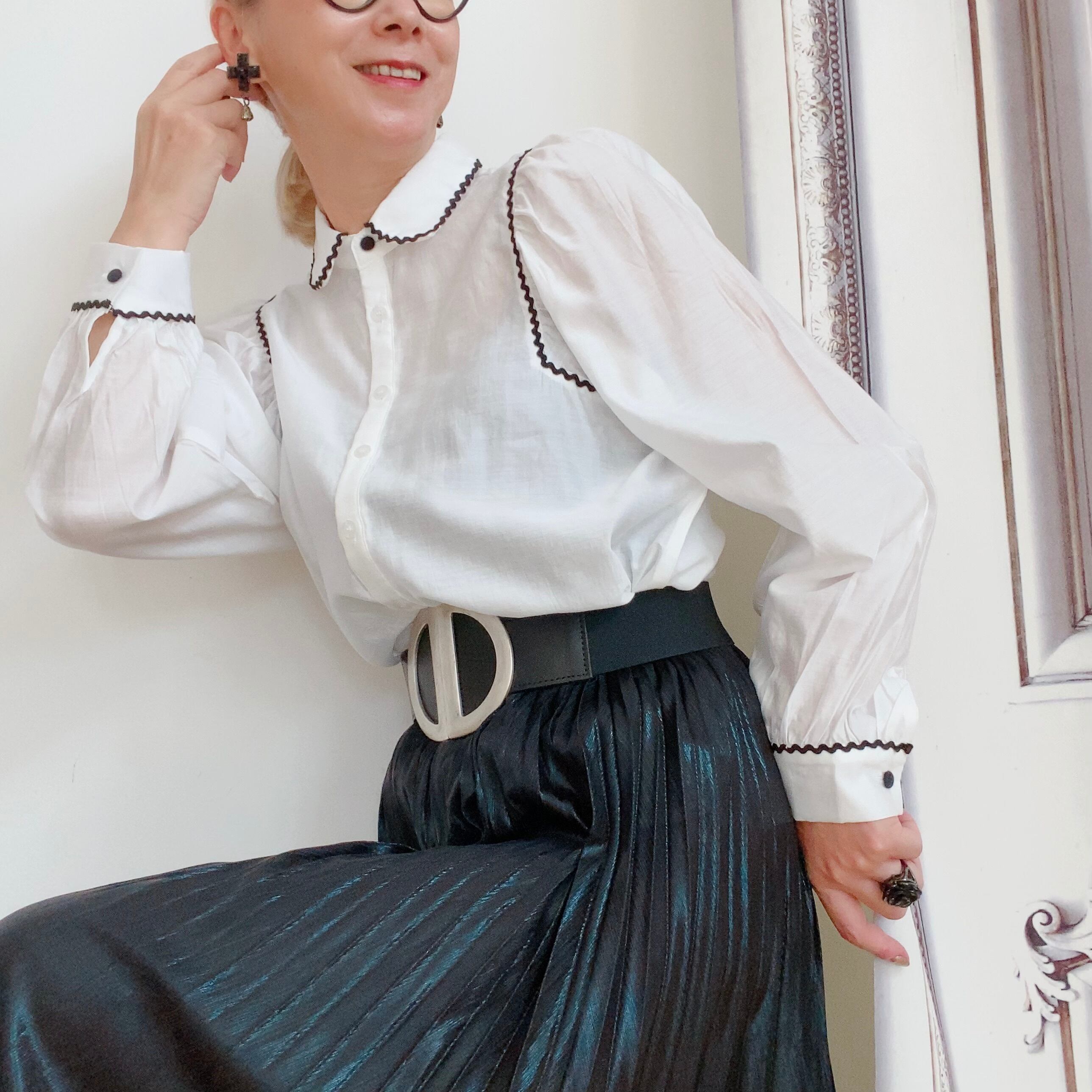 an`geメタリックブラック&ゴールドプリーツスカート(France):agw027 ¥16,800+tax