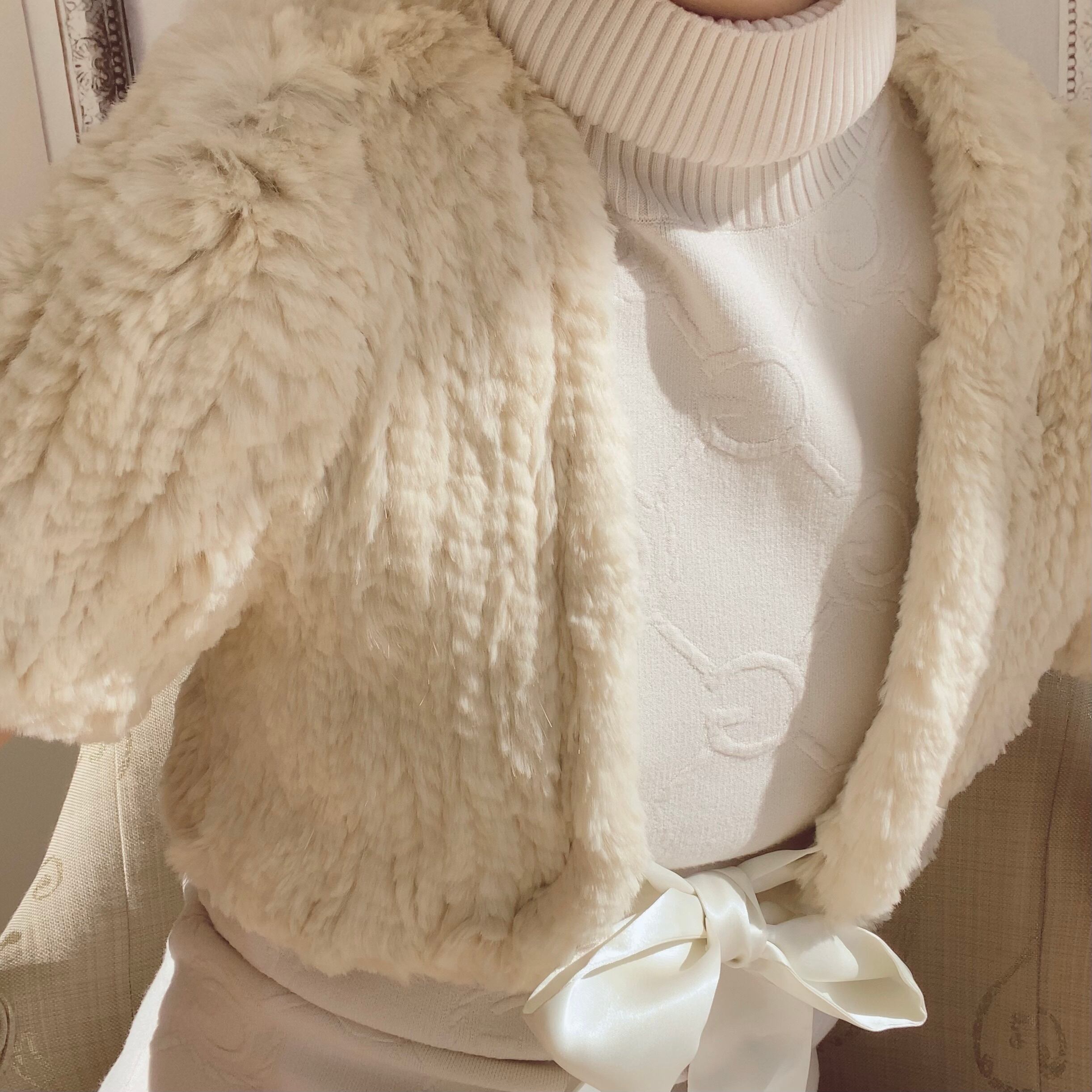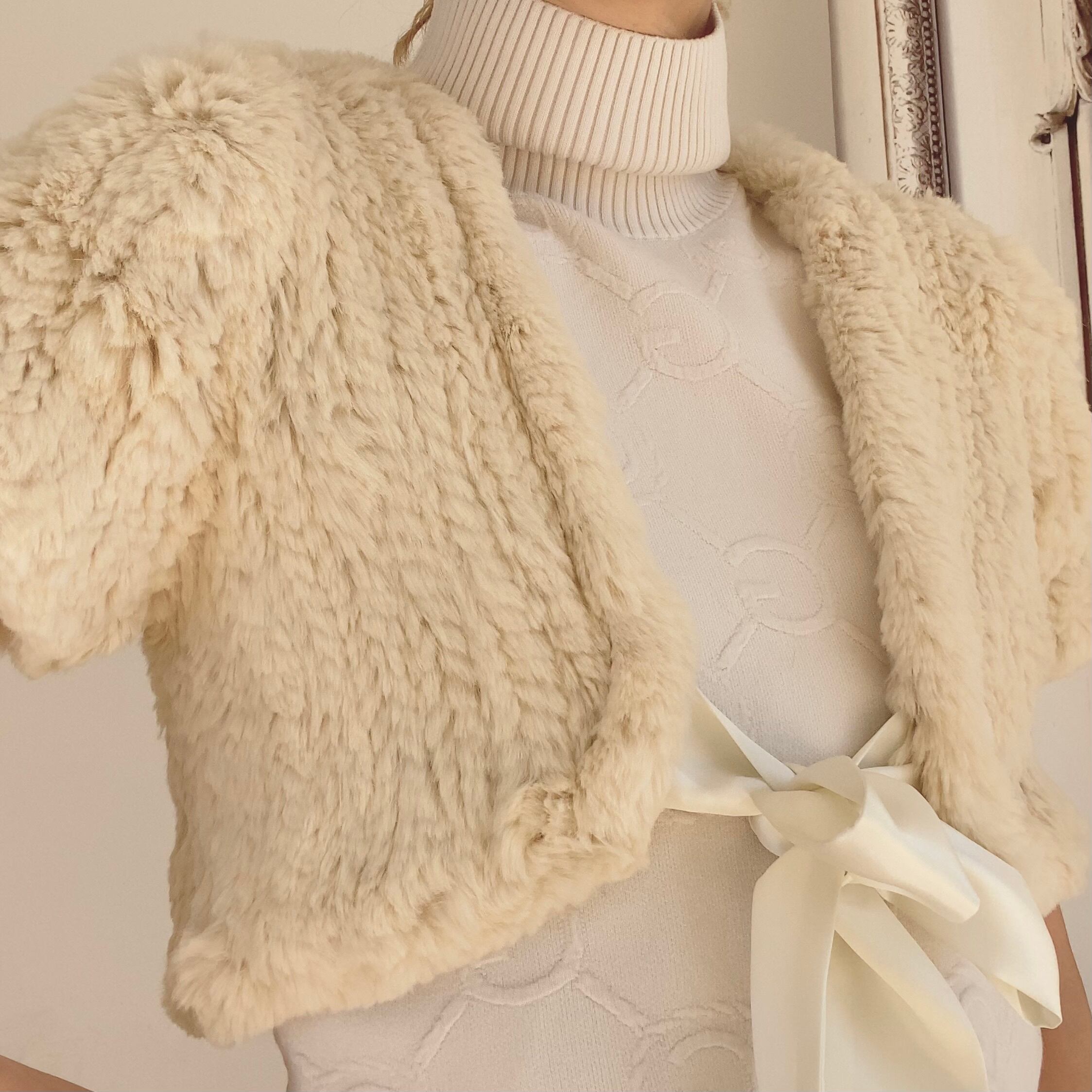 フランスブランドのles petites....collectionの本物の質感で暖かさを実感する、リアルラビットファー100%の滑らかで柔らかい風合いのファーショールボレロ。