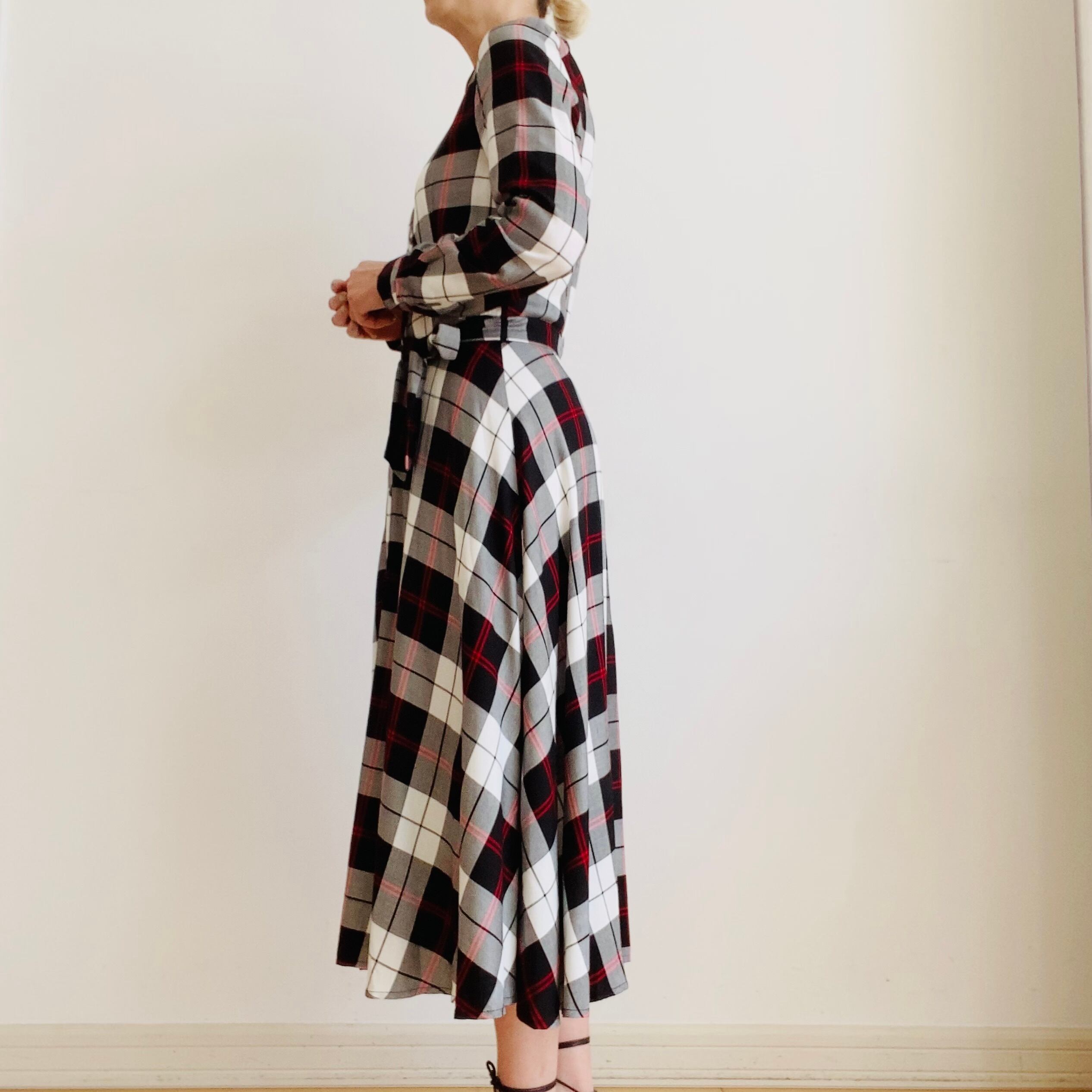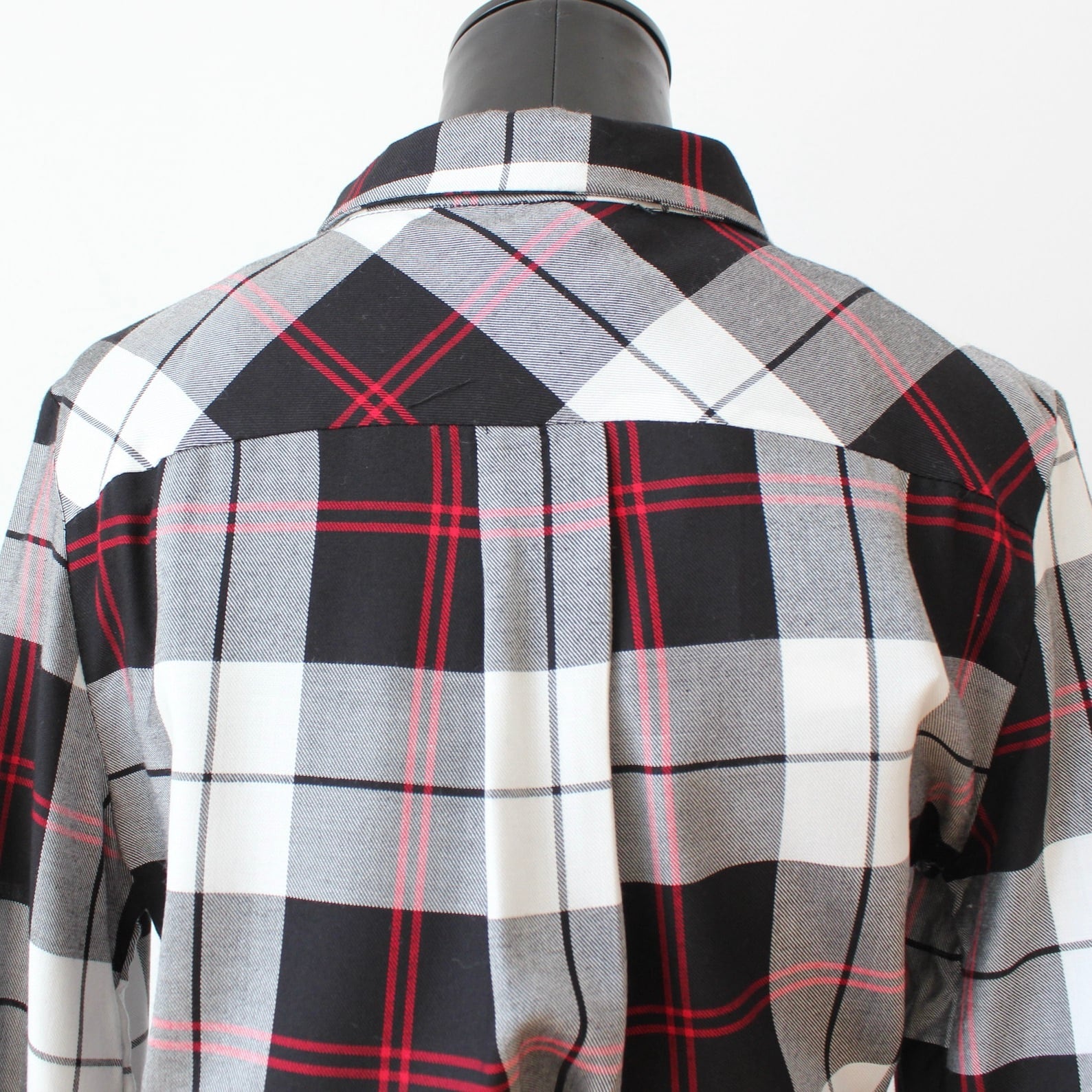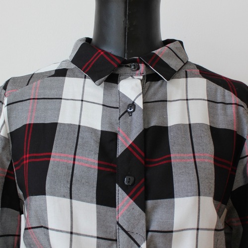 シックなブラック✖️ホワイトの大きなチェックに、レッドラインをポイントにしたカラーの、落ち着いたチェックプリント。