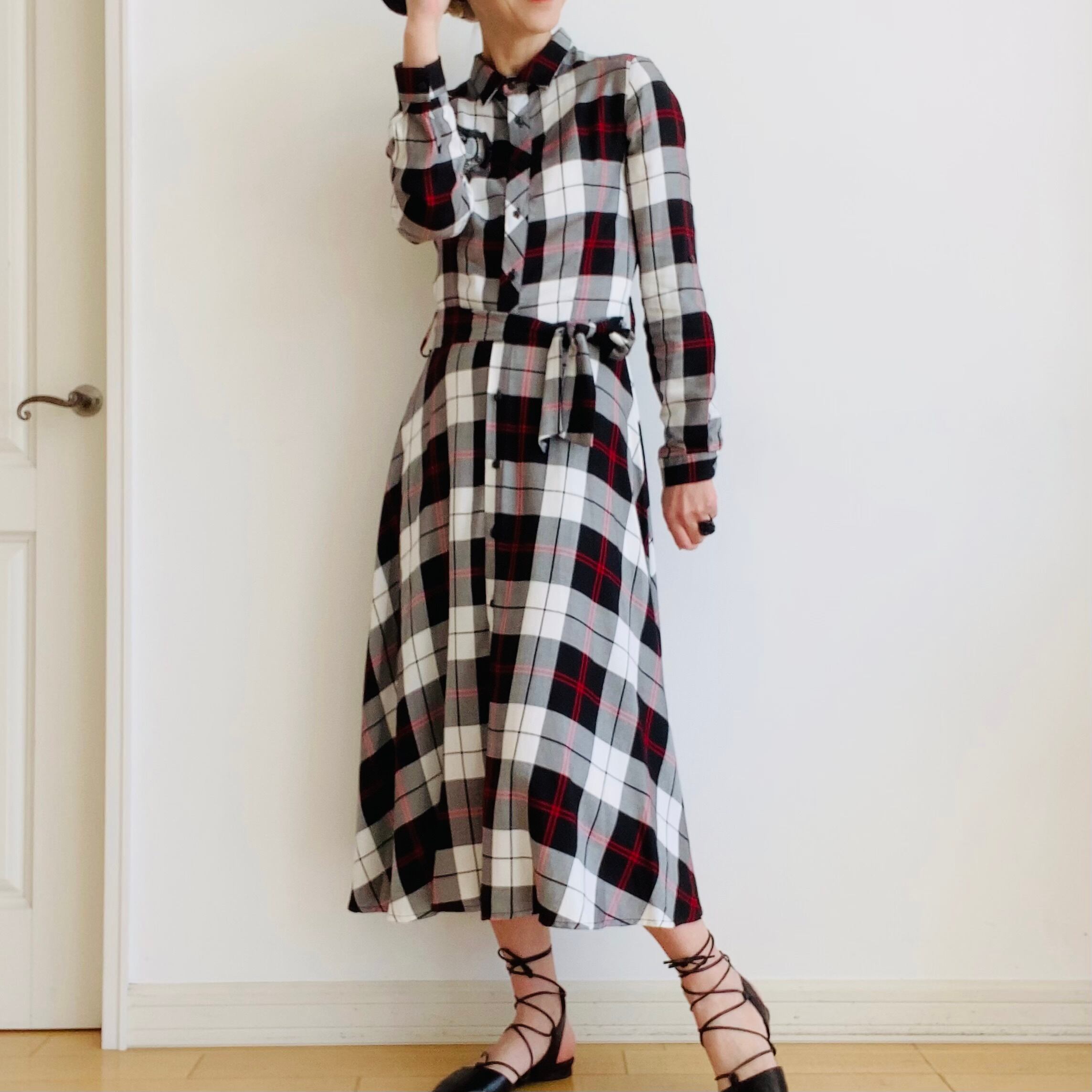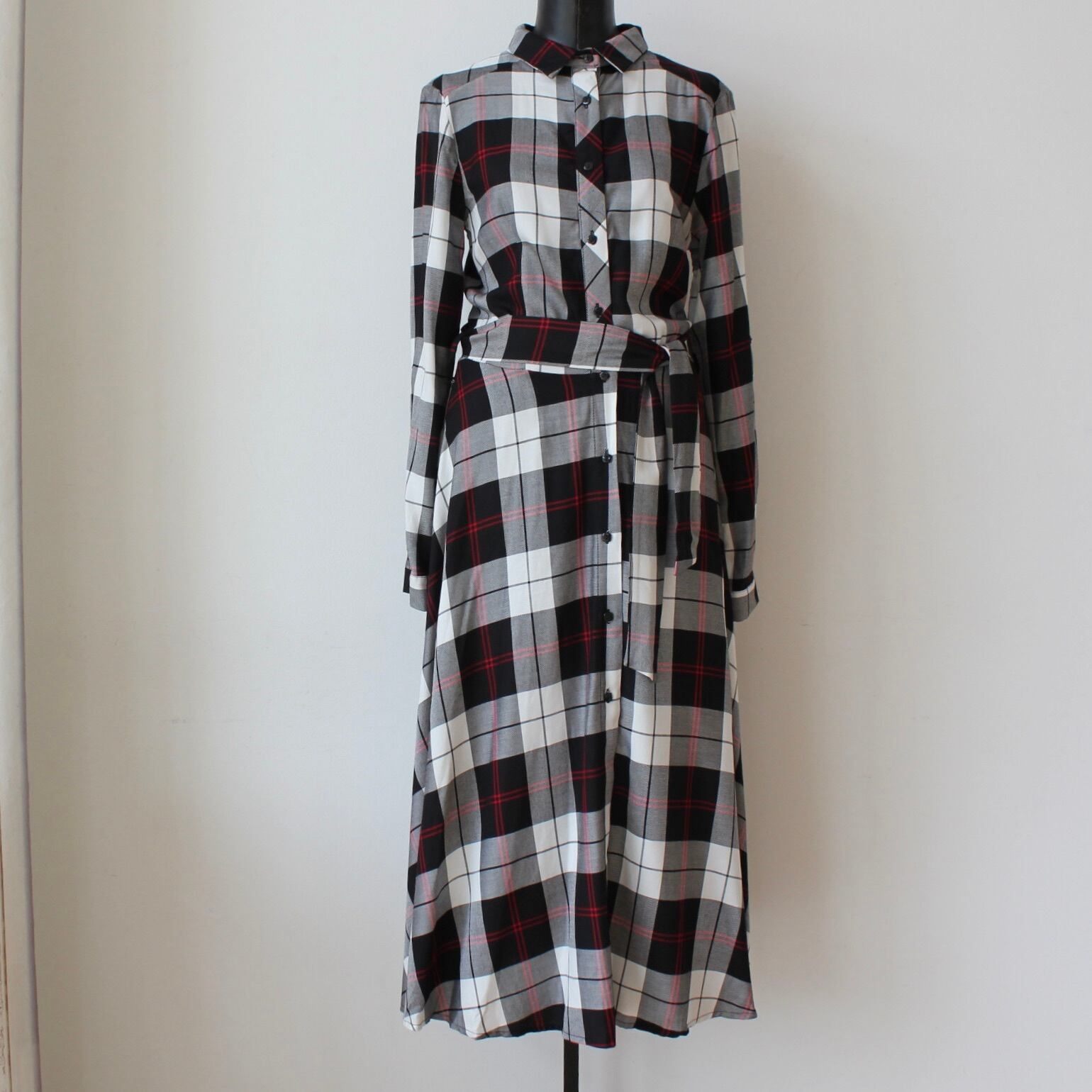 イタリアブランドPLEASEの、季節の変わり目の、デイリーなお出掛けに最適な、チェックプリントロングシャツマキシ丈ワンピース。