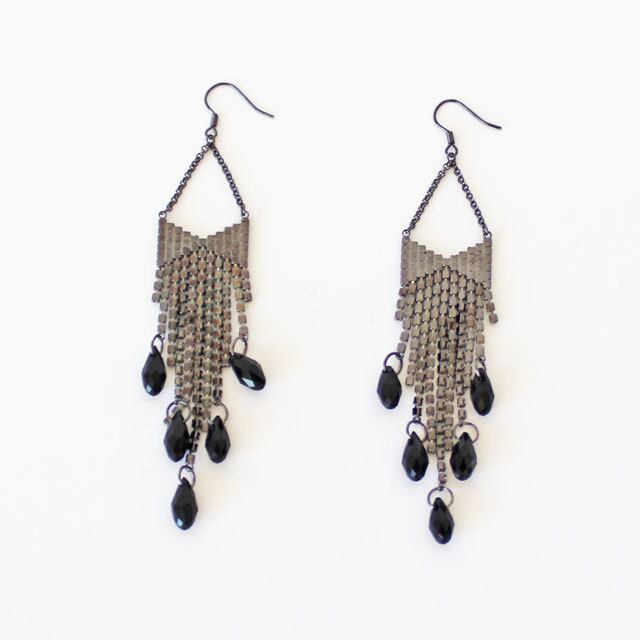 繊細なチェーンはピラミッドを描き、裾には上品なストーンのフリンジをあしらっています。