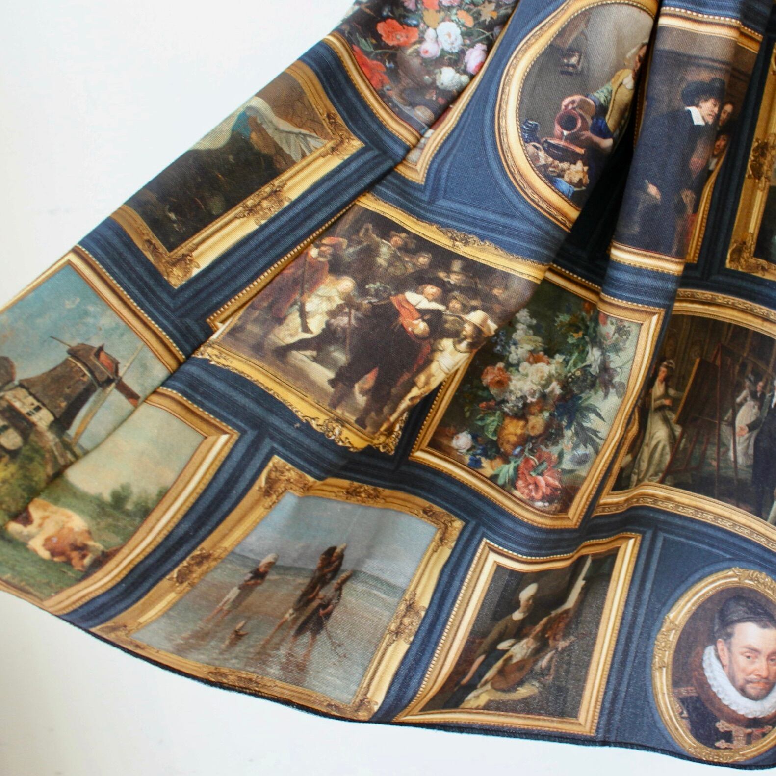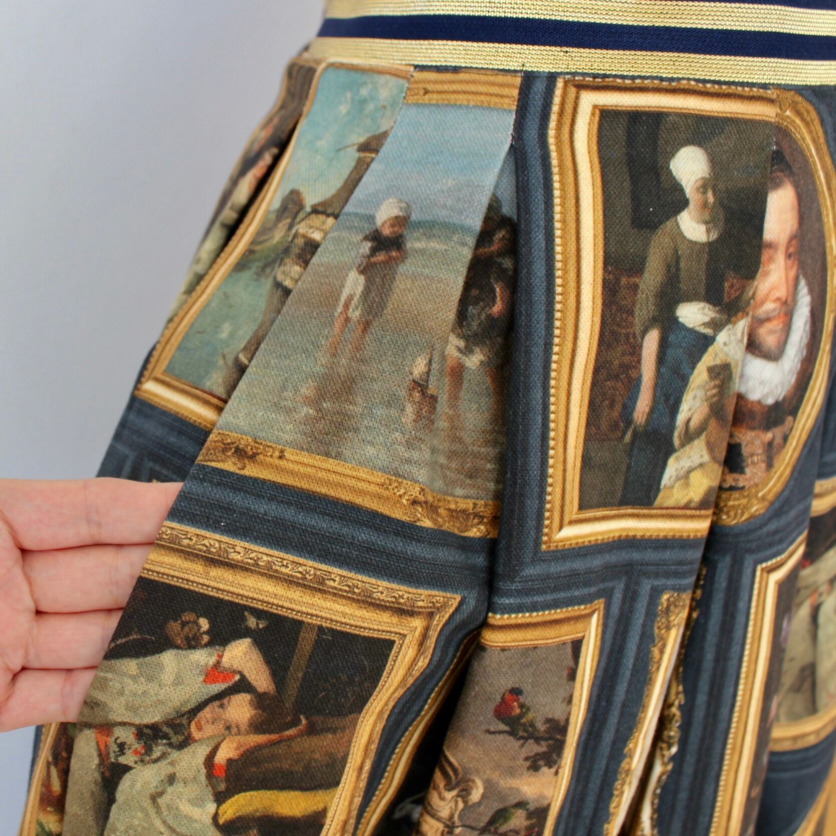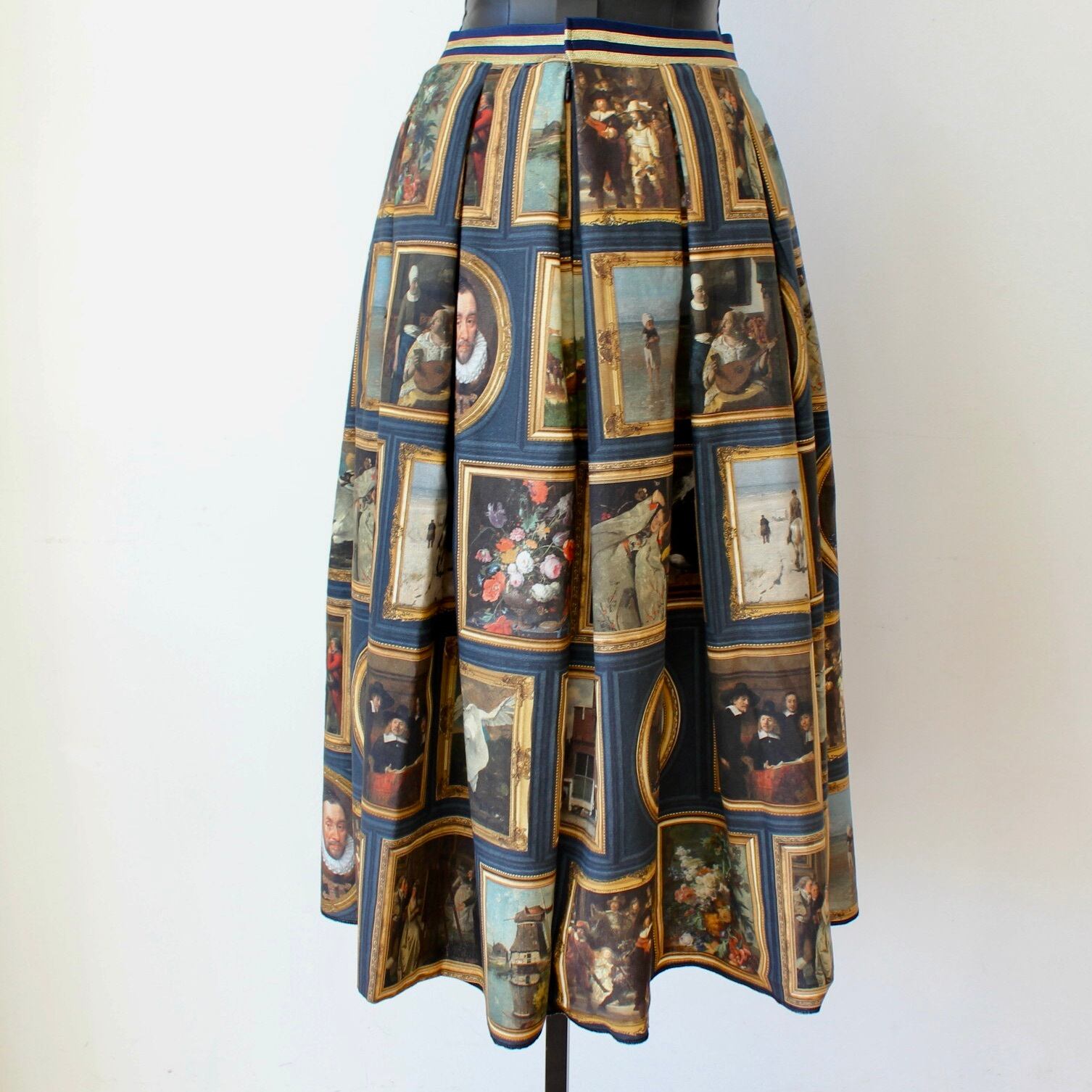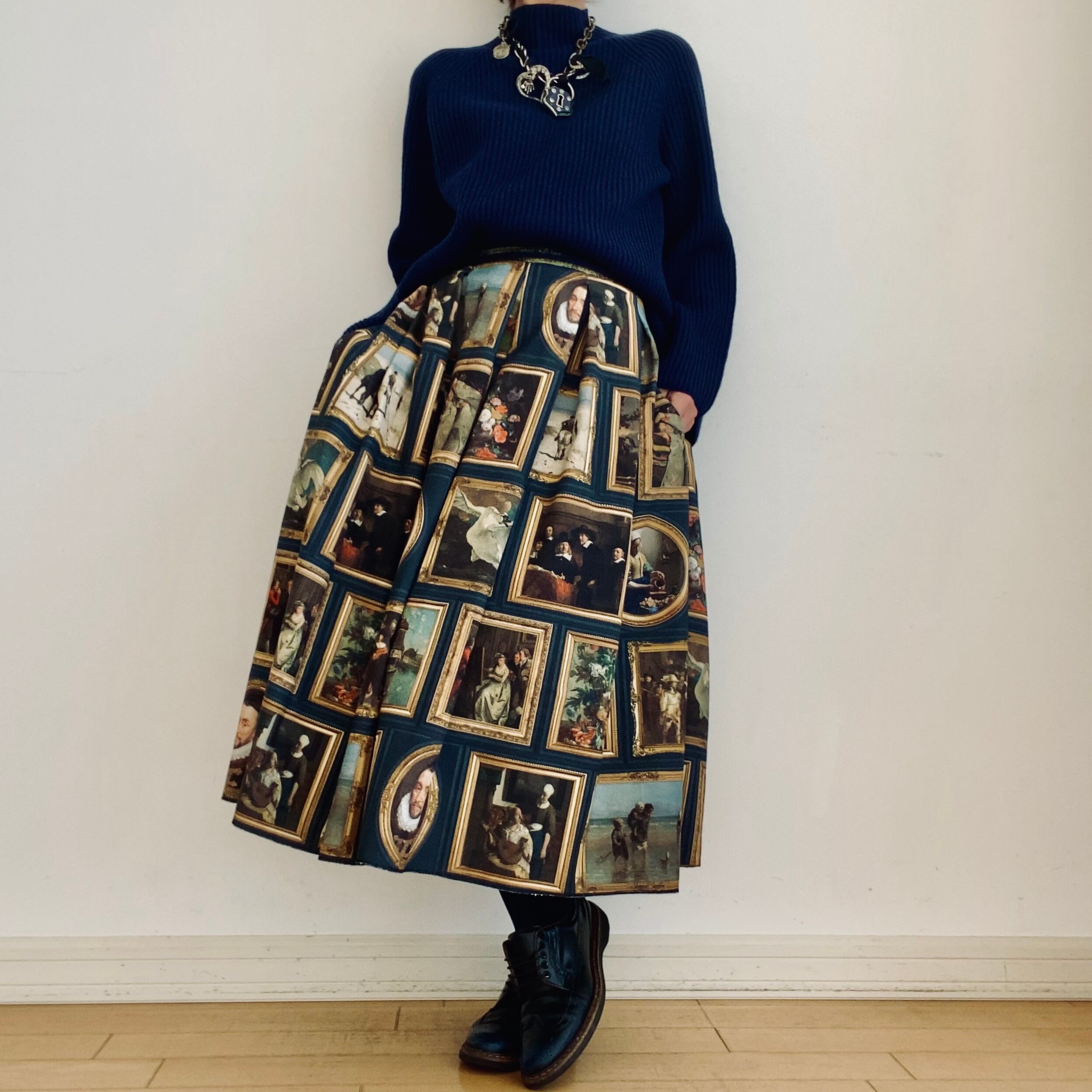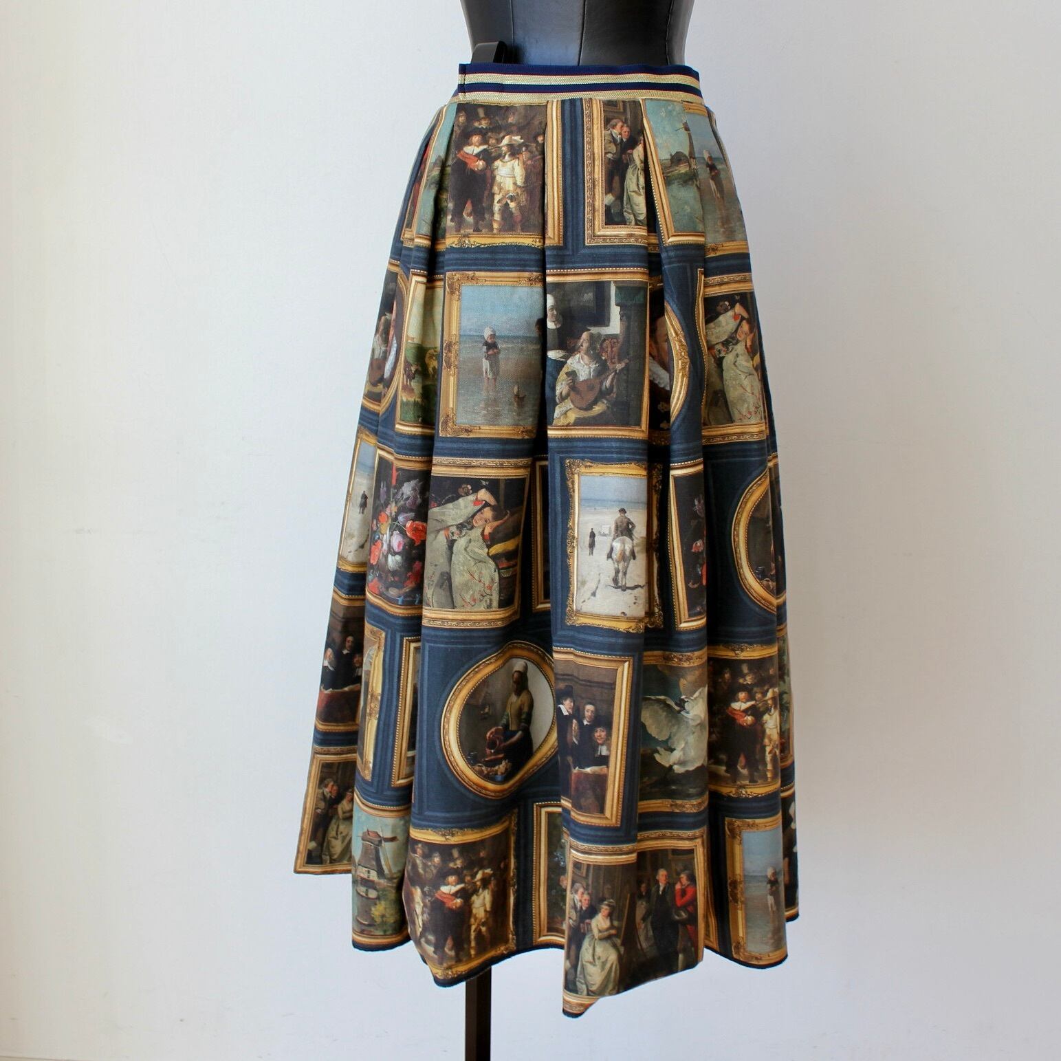 78オリジナルフランス素材絵画アートプリントタックフレアースカート:¥26,000+tax