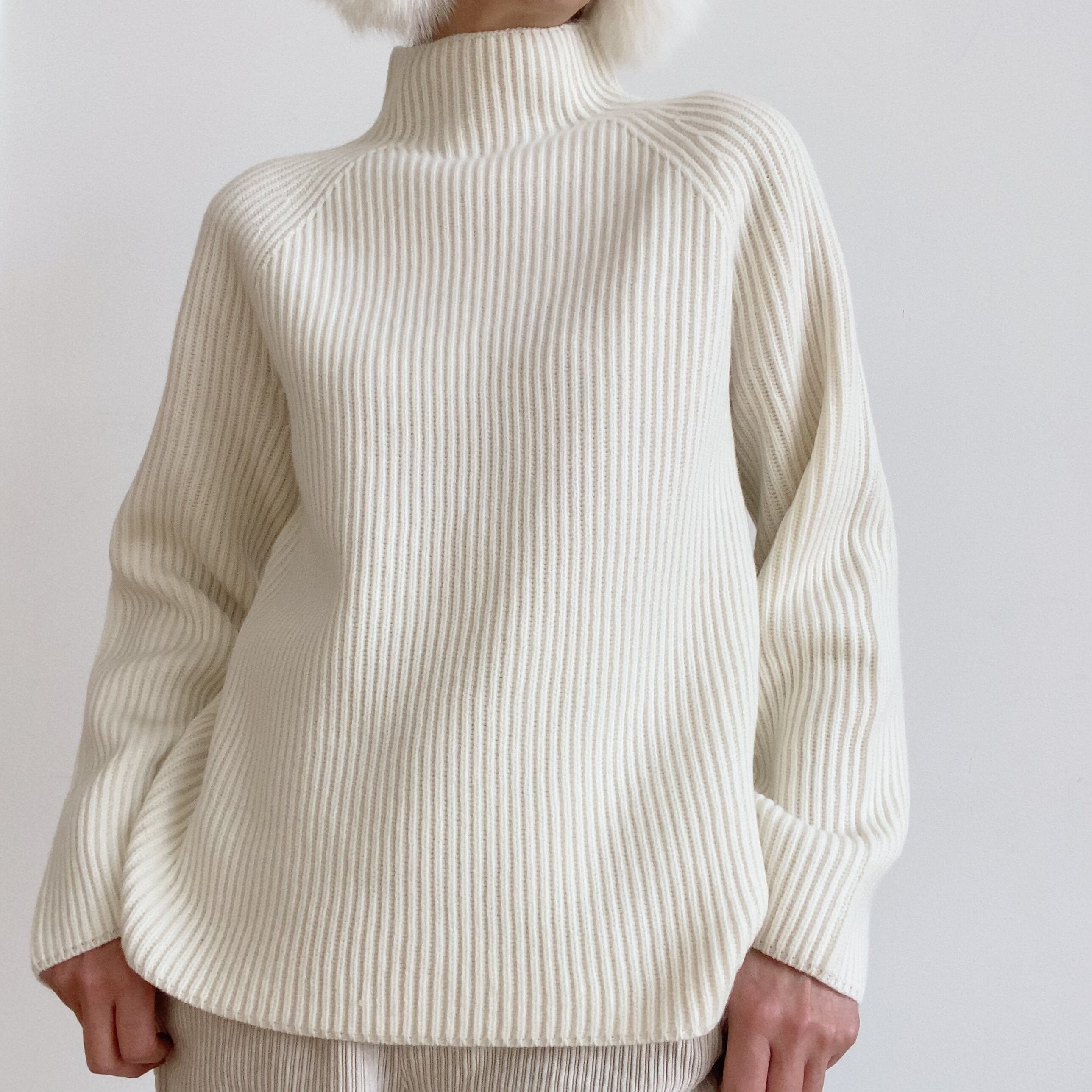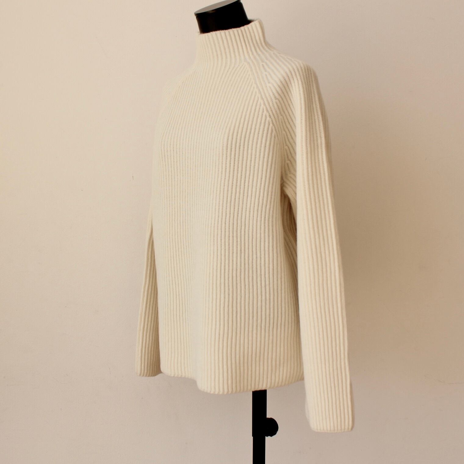 78オリジナルカシミヤ入りオフホワイトザックリハイネックシンプルリブニットセーター:78 ¥36.000+tax