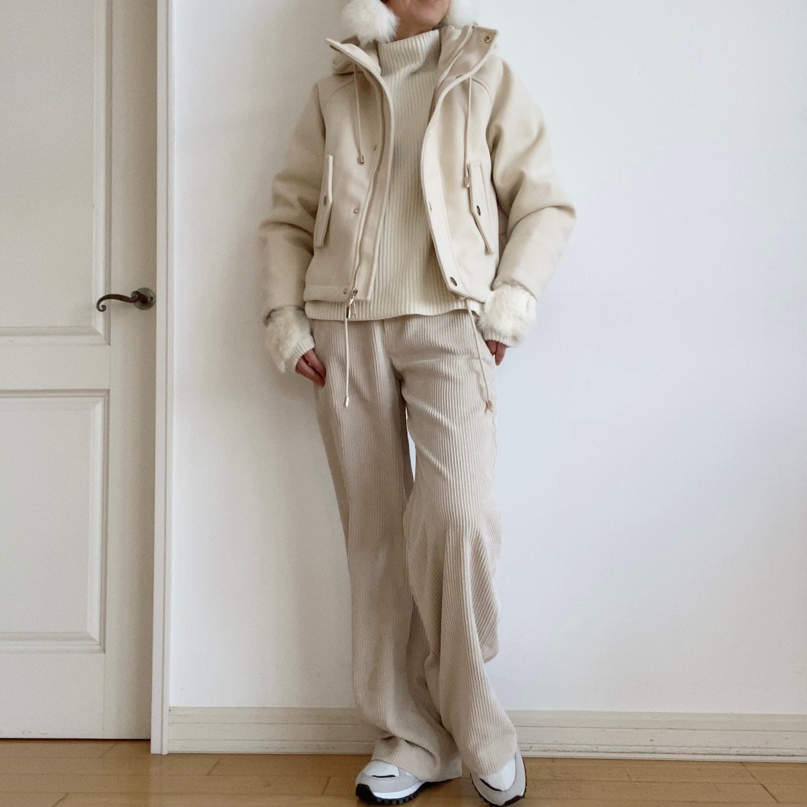 冬には欠かせない、オフホワイトカラーは、見た目も気分も優しくほんのり温かく包み込むカラーで、ワントーンのオフホワイトパンツや、シックなボトムから、カラー、プリントのボトムと合わせて、カジュアルなコーデから、スタイリッシュ、大人可愛いコーデまで最も合わせやすいカラーです。