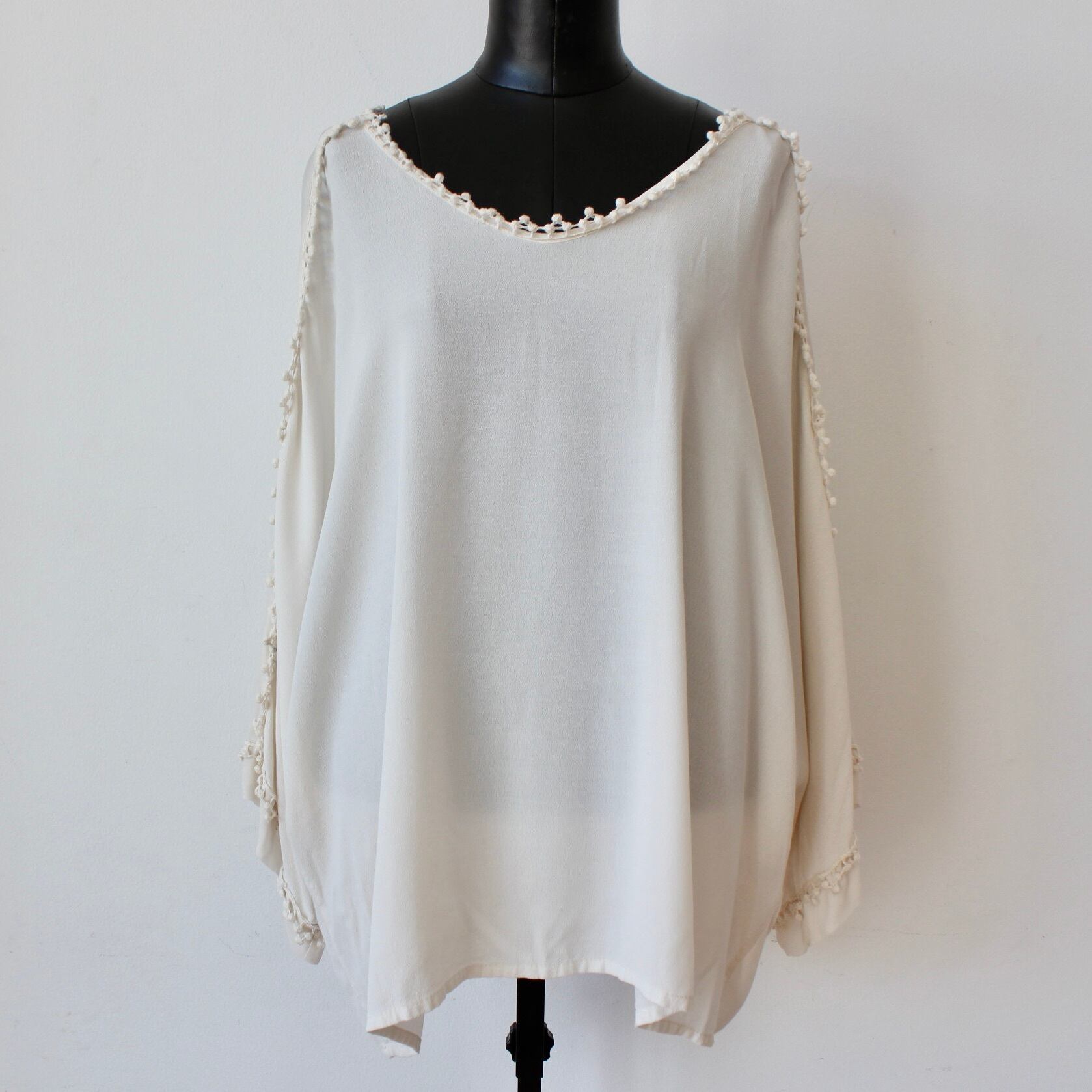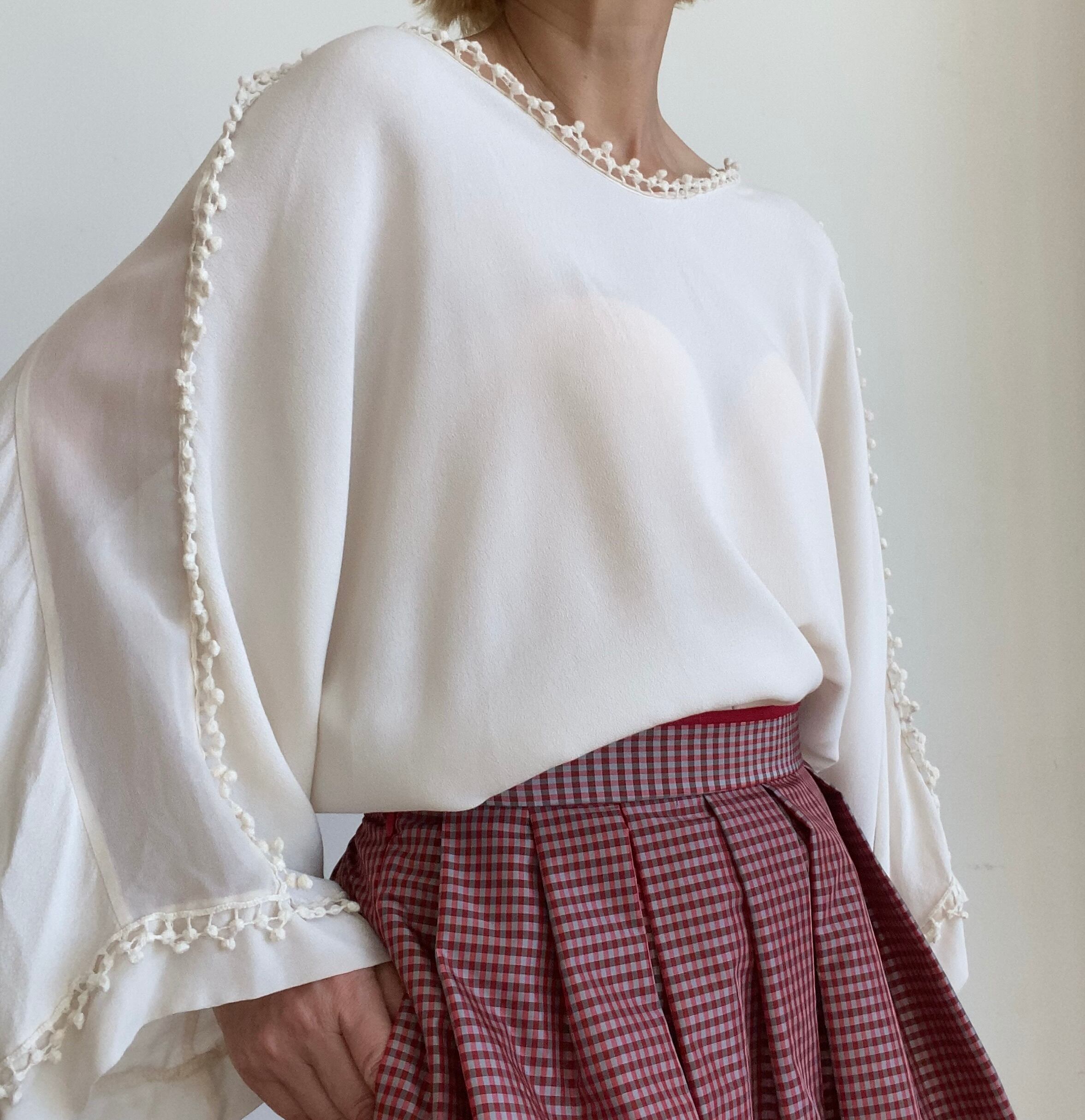 オフホワイトシフォンドットレーストリミングふんわりブラウス ITALY:¥20,000+tax