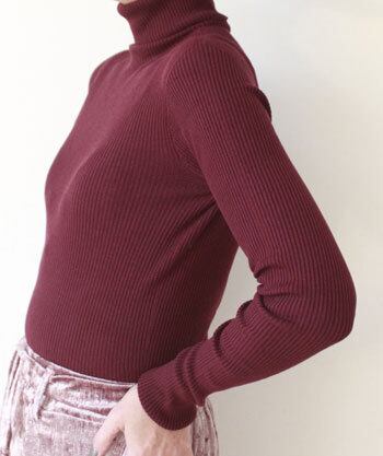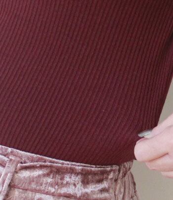 今シーズン取り入れたい、細めのリブ素材もポイント。