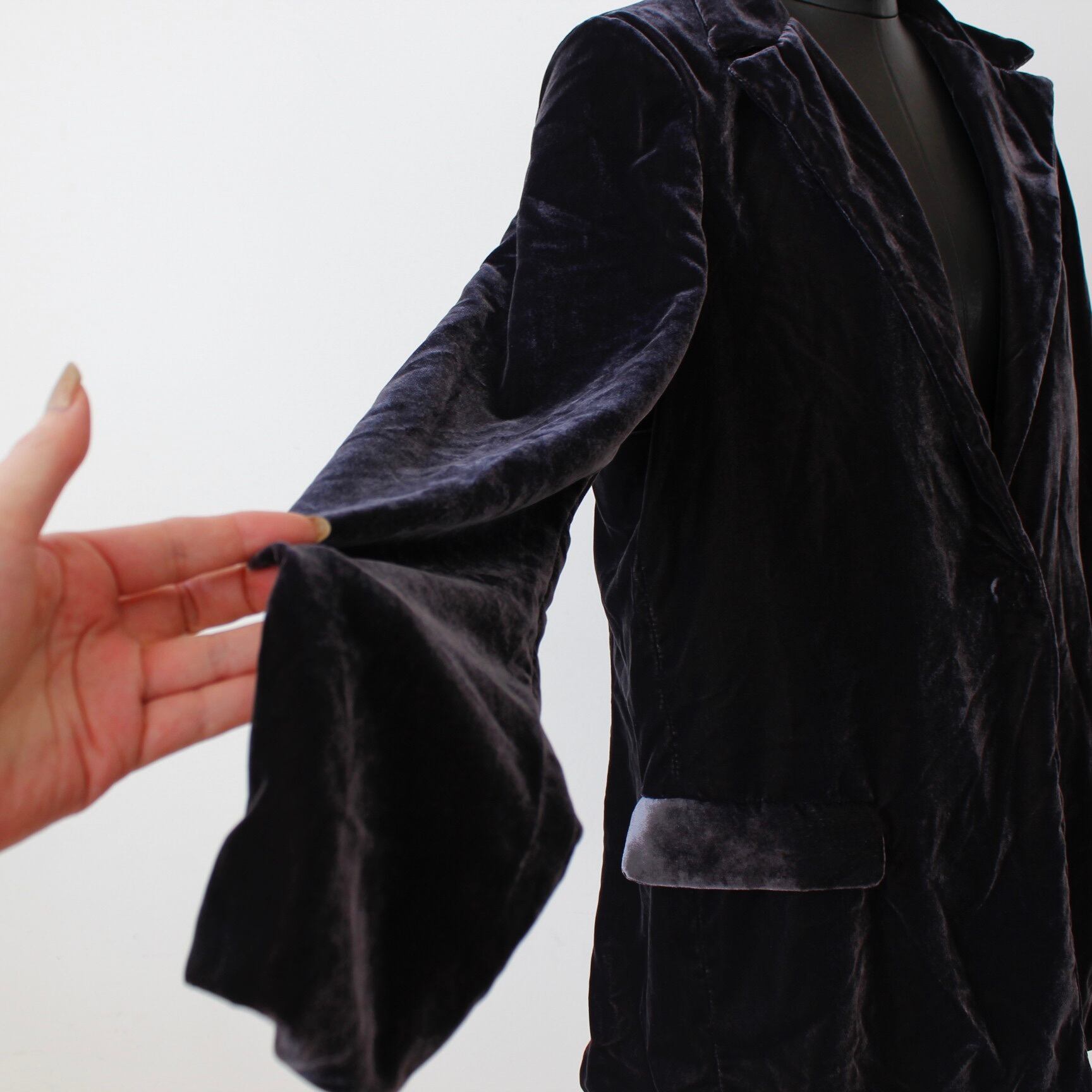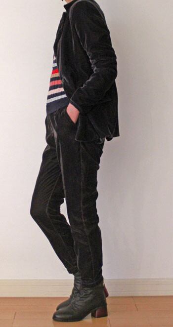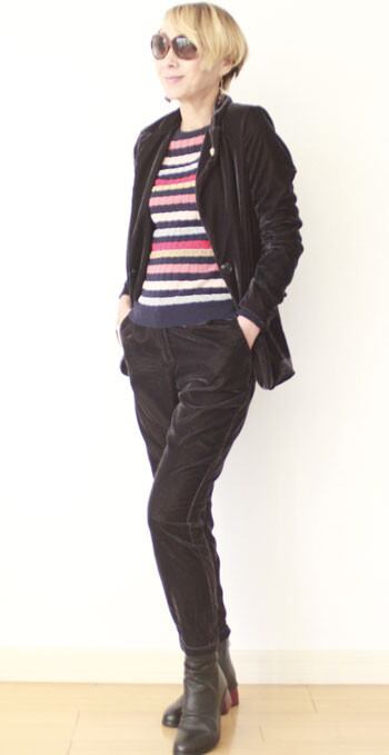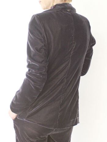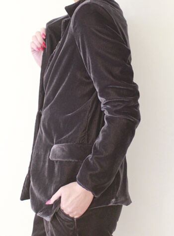 ベロアのリッチな質感と、ジャケットシルエットのゆったりした、落ち感がムードを醸し出してくれるストレッベロアジャケット。