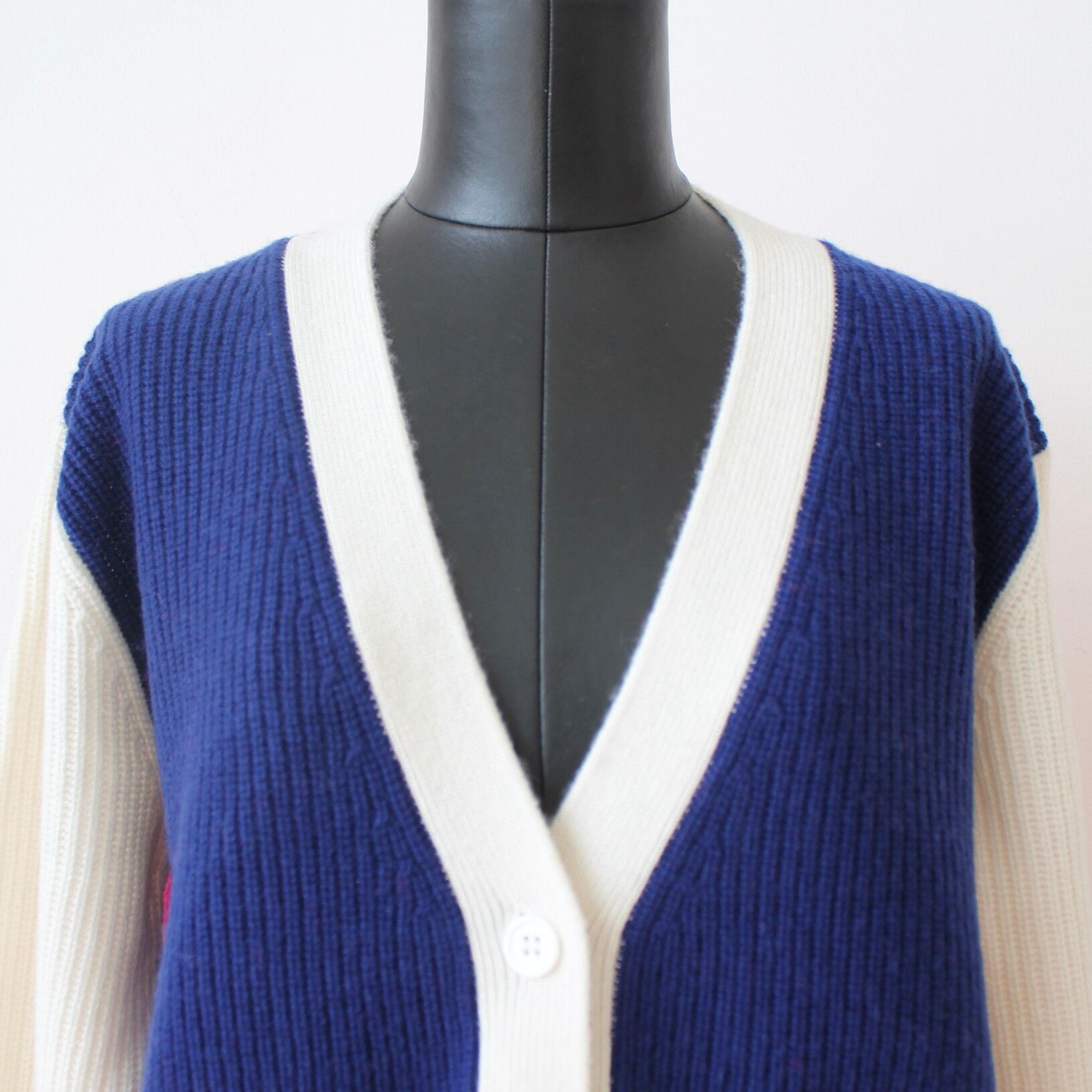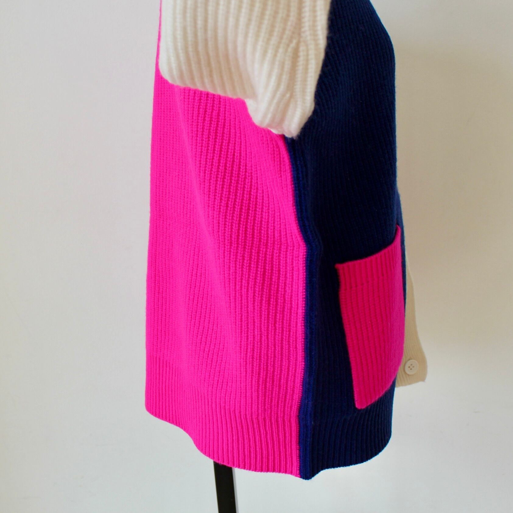 VILAGALLO マルチカラー切り替えVネックウールカーディガン SPAIN:VIL31663 ¥42,000+tax